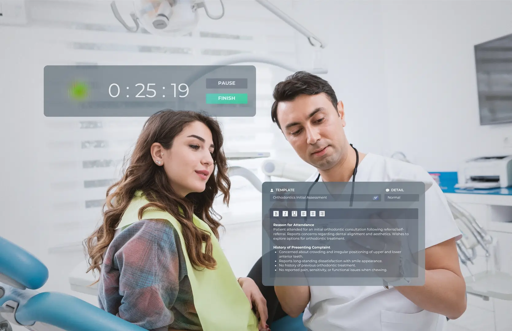 Your notes written - within seconds of finishing with your patient. Reduce your mental load, by reviewing instead of writing from scratch, allowing you to take back your time.
