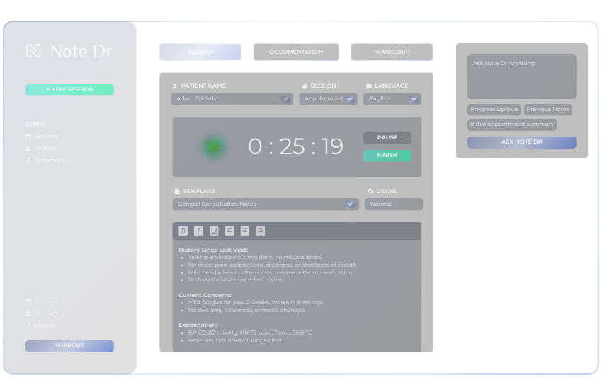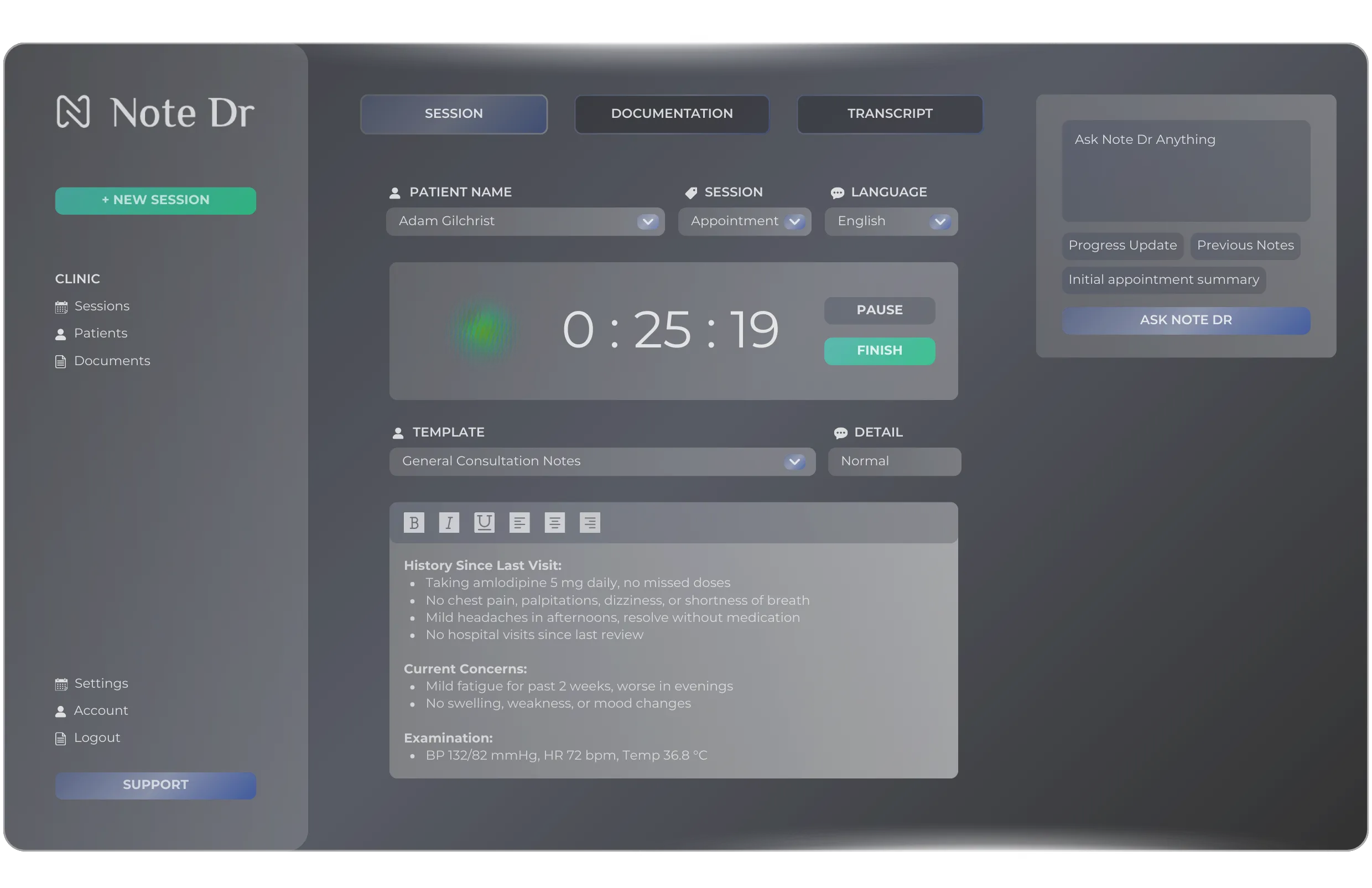 From transcription to templates, exports to insights - every feature of Note Dr is designed to help make documentation effortless, consistent, and clinically reliable.